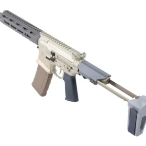 New Q, LLC HONEY BADGER 5.56 NATO – 9.69″ MATCH GRADE BARREL – 1:5 TWIST w/ADJUSTABLE GAS BLOCK – TAN/GRAY PISTOL w/BRACE