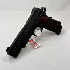 Sig Sauer 1911 Nitron® Rail - Match Grade Barrel & SAO Trigger - 45ACP - Black w/Custom Wood Grips The 1911 pistols from SIG SAUER feature all stainless steel frames and slides machined to exacting tolerances and hand-fitted to insure reliability and performance. Like all SIG SAUER products the 1911 contains only premium internal parts including a match grade barrel, hammer/sear set and trigger. The slide sports Novak night sights. The frame features 25-line per inch checkering on the front strap and 20-line per inch on the mainspring housing and is complimented by a set of checkered custom wood grips. Both the frame and slide on the 1911 are de-honed making it ideal for perfect full-size concealed carry. For safety the SIG SAUER 1911 features a beavertail grip safety with speed bump, extended thumb safety, firing pin safety and hammer intercept notch. SPECIFICATIONS BARREL LENGTH: 5 BARREL: 5" Carbon Steel FINISH: Nitron MAGAZINE: Two 8 Rd CALIBER GAUGE: 45 Auto BARREL DESCRIPTION: 5" Carbon Steel ACTION: SAO CAPACITY: 8 GRIP: Rosewood SAFETY: Grip SIGHTS: SIGLITE MINIMUM OVERALL LENGTH: 8.7 in. BARREL LENGTH RANGE: 5" to 5.99" FRAME DESCRIPTION: Black Nitron Stainless Steel with Picatinny Rail & Beavertail FRAME FINISH: Black Nitron FRAME MATERIAL: Stainless Steel GRIPS: Rosewood INCLUDES: 2 Magazines MAX CAPACITY: 8.0 OAL: 8.70" SERIES: Full Size *CA Compliant SIGHT CONFIGURATION: Siglite Night SIGHT STYLE: Night SLIDE DESCRIPTION: Serrated Black Nitron Stainless Steel SLIDE FINISH: Black Nitron SLIDE MATERIAL: Stainless Steel WEIGHT: 41.60 oz$1,299.00Original price was: $1,299.00.$992.00Current price is: $992.00.
