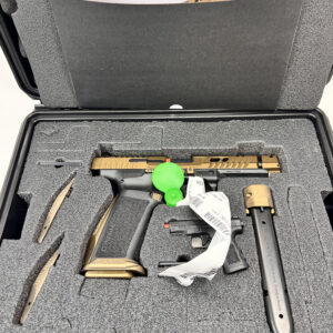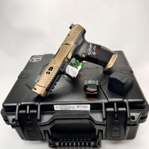 New CANiK USA/TARAN TACTICAL INNOVATIONS TTI COMBAT - w/MeCANiK MO318 OPTIC - 18+1 TWO MAGS - 9MM Taran Tactical Innovations and CANiK proudly announce their collaboration in introducing the CANiK TTI Combat—a revolutionary addition to the CANiK lineup. Crafted on a brand-new polymer frame conceptualized by Taran Butler himself, the TTI Combat sets a new standard in performance. Meticulously designed for champions by champions, it boasts an array of features tailored to meet the exacting demands of a world-class shooter like Taran Butler. The TTI Combat excels both inside and out, showcasing an array of standout features. Notable highlights include its aggressive grip texturing, seamlessly integrated flared magwell, and a removable aluminum competition magwell. With a ported and spiral-fluted barrel, alongside the pioneering CANiK compensator, this handgun ensures unparalleled precision and control. Further enhancing its performance is a diamond-cut, flat-faced 90-degree break trigger, coupled with fully adjustable sights for optimum accuracy. Delivered with two 18-round magazines—one featuring a flush-fit TTI base pad and the other a +3 TTI base pad—the TTI Combat offers versatility in magazine options. Its serrated, ambidextrous slide release and three back strap size options cater to individual preferences, while the low-profile optics cut with a MECANIK MO3 Optic. This exceptional firearm package includes essential accessories such as a custom holster, hard travel case, cleaning kit, tool kit, custom punch, magazine speed loader, and trigger lock. Additionally, it features three optic plate interfaces to accommodate various optic configurations. To commemorate the enduring partnership between Taran Tactical Innovations and CANiK, each package includes a distinguished collaboration coin—a testament to the creation of an unparalleled firearm experience. Details: *Brand: Canik *Model: TTI Combat *Caliber: 9mm Luger *Capacity: 18+1 *Action: Semi-Auto *Barrel Length: 4.60" *OAL: 7.85" *Optic: MeCanik MO3 *Frame Material: Synthetic *Frame Finish: Black *Slide Finish: Burnt Bronze Cerakote *Slide Material: Steel *Slide Description: Optic Cut / Serrated *Barrel Finish: Black Nitride *Barrel Material: Steel *Muzzle: Compensator *Frame Size: Full Size *Grips: Aggressive Texture 8Sight Configuration: Hi-Viz Fiber Optic Front / Adj Rear *Height: 5.87" *Includes: 2 Magaines / Carry Case *Width: 1.41" *Barrel Description: Fluted / Ported *Trigger: Flat Face *Weight: 29.50 oz plus Optic$1,199.99Original price was: $1,199.99.$969.00Current price is: $969.00. -