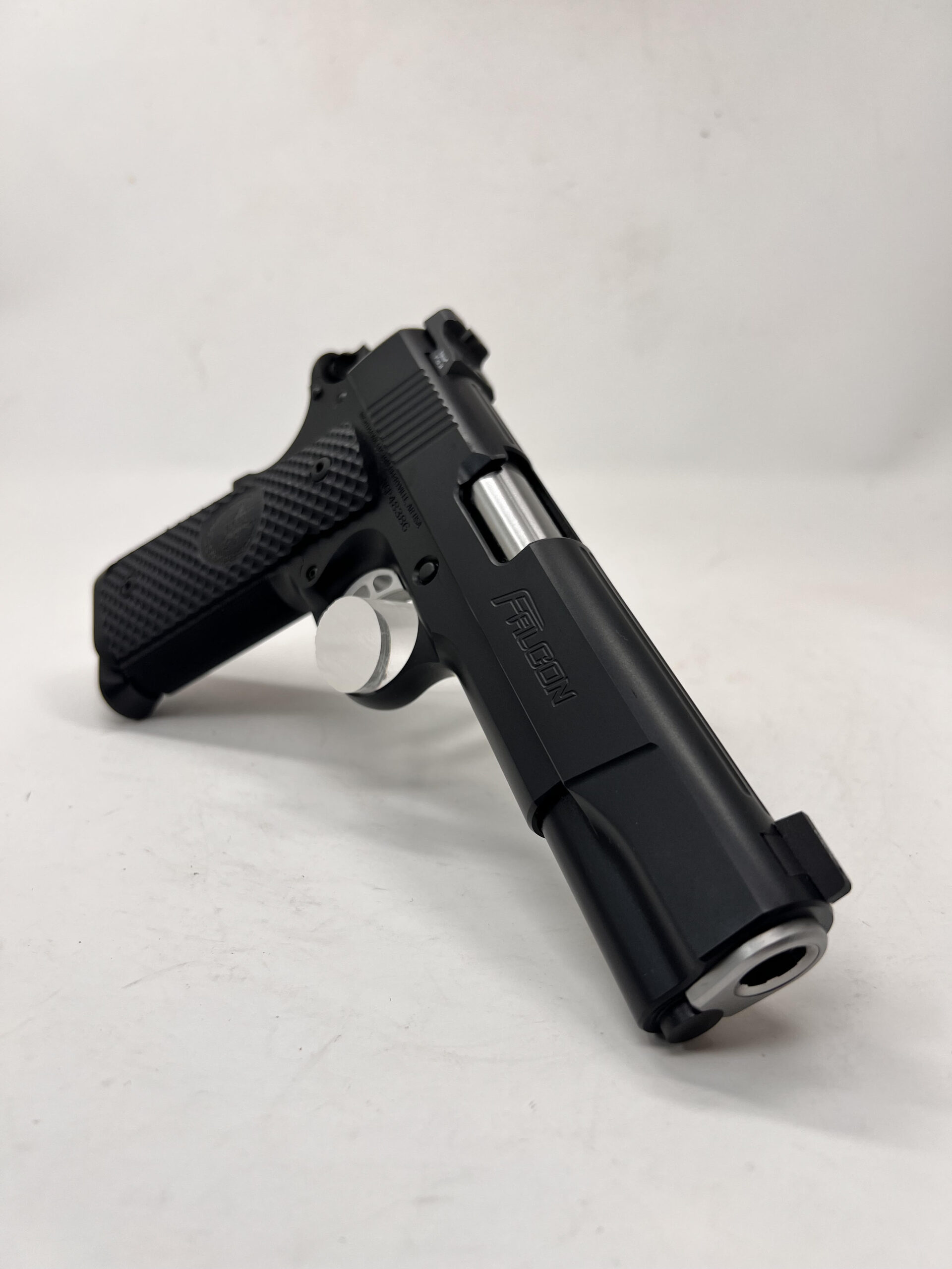 The Falcon is finished in a Black Nitride coating, providing a sleek and durable finish that resists wear and corrosion. This pistol comes equipped with tritium sights for improved visibility and target acquisition in various lighting conditions. Additionally, the Falcon includes two .45 ACP magazines, offering ample ammunition for extended shooting sessions.