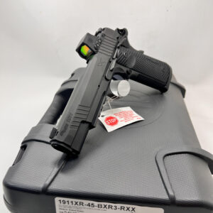 New SIG SAUER 1911 X-SERIES w/ROMEO-X Red Dot INSTALLED - 45ACP - BLACK The classic 1911 has joined the Red Dot Revolution with the introduction of the new 1911-X from SIG SAUER. A balance of classic engineering and style with modern upgrades including an ultra-low-profile direct-mount optic capability and XRAY3 Day/Night sights for extreme sight picture visibility. An adjustable flatblade trigger and custom G10 grip panels from LOK Grips takes shooting ergonomics to the next level for exceptional handling and comfort. Outfitted with a railed stainless-steel frame with undercut trigger guard, extended ambidextrous manual safety and slide stop, front and rear serrations and a removable metal magwell. A stylized stainless steel slide, unrivaled custom aesthetics, and a serrated checkered front strap bring upgraded features to a timeless platform. Available in 5-inch full-size and 4.25-in carry/commander models. Greater performance. Increased accuracy. Classic design collides with modern innovation. 1911-X from SIG SAUER. The 1911-X ROMEO-X models feature a factory installed ROMEO-X red-dot sight from SIG SAUER Electro-Optics; the optics is crafted from 7075 aircraft-grade alloy featuring machined anti-reflection grooves on shooter-facing surfaces with distortion-free aspheric glass and a patent-pending Beryllium Copper flexure-arm adjustment system. The ROMEO-X incorporates a high-efficiency point source red LED emitter with 2 MOA dot / 32 MOA circle reticle, side independent brightness adjustment buttons, 15 brightness settings including night vision settings, and a side-mounted CR1632 battery compartment with a threaded battery cap so the optic does not need to be removed from the pistol for battery changes. Additionally, the ROMEO-X offers a low deck height for standard-height iron sight co-witness, has a minimum continuous runtime of 20,000 hours at medium brightness setting and utilizes MOTAC™ (Motion Activated Illumination), MAGNETAC™ (Magnetic Activation) and D.A.R.C™ (Dark Adaptive Reticles & Coatings) technologies. Optic-Ready X Slide with Compact Optic Footprint SIG SAUER ROMEO-X Red Dot Optic; Mounted Extended Slide Release and Ambi-Safety Levers Custom G10 Grips from LOK Grips Steel Frame with Undercut and Detachable Magazine Well P-Series XRAY3 Day/Night Sights SIG SAUER ROMEO-X Red Dot Optic (2) 8-Round Steel Magazines$1,949.99Original price was: $1,949.99.$1,598.00Current price is: $1,598.00. -