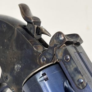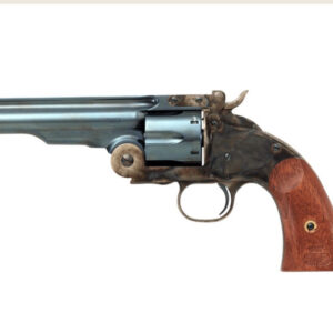 New UBERTI S&W 1875 SCHOFIELD No. 3 TOP BREAK - 3.5" BARREL 45LC - FORGED STEEL COLOR CASE HARDENDED FRAME w/CHARCOAL BLUED BARREL & CYLINDER plus TWO-PIECE WALNUT GRIPS Designed by Major George Schofield to be operated with one hand while on horseback, a break-open pistol was ideal for mounted soldiers in the U.S. Cavalry. Shooters could easily eject all six spent cartridges and reload while on horseback. The top break pistol also proved useful to the likes of Jesse James and Wild Bill Hickok. The Schofield barrel latch opens by pulling it back with the thumb and includes the rear sight notch. This 3.5" barreled model features a forged steel frame, charcoal blued finish with various color case hardened parts and a two-piece walnut grip with cartouche. Chambered in the venerable 45LC.$1,608.55Original price was: $1,608.55.$1,522.00Current price is: $1,522.00. -