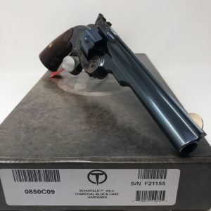 New Uberti S&W 1875 Schofield No. 3 Top Break - 7" Barrel 45LC - Forged Steel Color Case Hardended Frame w/Charcoal Blued Barrel & Cylinder plus Two-Piece Walnut Grips Designed by Major George Schofield to be operated with one hand while on horseback, a break-open pistol was ideal for mounted soldiers in the U.S. Cavalry. Shooters could easily eject all six spent cartridges and reload while on horseback. The top break pistol also proved useful to the likes of Jesse James and Wild Bill Hickok. The Schofield barrel latch opens by pulling it back with the thumb and includes the rear sight notch. This 7" barreled model features a forged steel color cased hardened frame, charcoal blued finish with various color case hardened parts and a two-piece walnut grip with cartouche. Chambered in the venerable 45LC.$1,620.14Original price was: $1,620.14.$1,462.00Current price is: $1,462.00. -