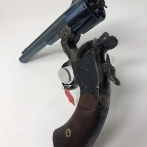New Uberti S&W 1875 Schofield No. 3 Top Break - 5" Barrel 45LC - Forged Steel Blued Frame & Blued Barrel w/various Color Case Hardended parts & Two-Piece Walnut Grips Designed by Major George Schofield to be operated with one hand while on horseback, a break-open pistol was ideal for mounted soldiers in the U.S. Cavalry. Shooters could easily eject all six spent cartridges and reload while on horseback. The top break pistol also proved useful to the likes of Jesse James and Wild Bill Hickok. The Schofield barrel latch opens by pulling it back with the thumb and includes the rear sight notch. This 5" barreled model features a forged steel blued frame and barrel with various case hardened parts and a two-piece walnut grip with cartouche. Chambered in the venerable 45LC.$1,467.12Original price was: $1,467.12.$1,311.00Current price is: $1,311.00. -