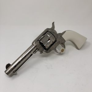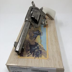 Pietta’s Pre-War Frontier model 1873 Colt Single Action Army chambered in 45LC. One piece faux ivory grips adorn this factory high coverage engraved masterpiece. The action is incredibly smooth and its accuracy will amaze you. This 4.75” barreled Peacemaker revolver and is an exacting replica down to the same weight, size, performance and feel. It has a floating hammer pin as opposed to safety transfer bar and the iconic 4 clicks to bring the hammer to full cock.$1,105.48Original price was: $1,105.48.$969.00Current price is: $969.00. -