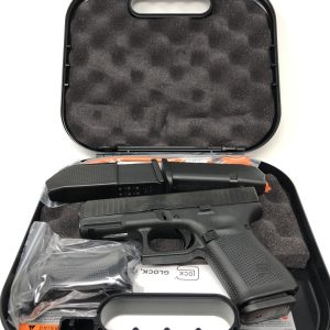 The GLOCK 19 Gen5 pistol in 9 mm Luger is ideal for a more versatile role due to its reduced dimensions. The new frame design without finger grooves still allows to instantly customize its grip to accommodate any hand size by mounting the different back straps. The reversible magazine catch and ambidextrous slide stop lever make it ideal for left and right-handed shooters. The rifling and the crown of the barrel were slightly modified for increased precision. Features: Front Slide Serrations Additional Specs: Trigger Pull: 5.85 lbs. Sights: Fixed Glock Sights Frame: Polymer Frame Finish: nDLC, Black Magazine: (3) 15 Round Caliber: 9mm Action: Safe Action Safety: No Manual Safety Barrel: 4.02″ Glock Marksman Barrel Overall Length: 7.28″ Weight: 23.63 oz. (w/ Empty Mag)$647.00Original price was: $647.00.$509.00Current price is: $509.00.