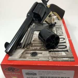 Pietta 1873 Single Action Army Gunfighter model. Chambered in 357 mag, 4.75" barrel. Checkered grips. Blued with brushed nickel trigger guard and backstrap. 4 clicks to bring the hammer to full cock.$598.00Original price was: $598.00.$499.00Current price is: $499.00. -