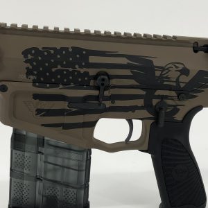 - Black Armor-Tuff® Finish applied over Mil-Spec Hard Anodized Upper/Lower Receivers with Tattered US Flag