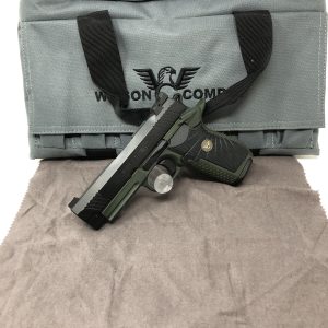 NEW Wilson Combat EDC-X9 - 4" Compact Custom Carry - Black DLC Slide over OD Green Frame Black Grips. Bill Wilson’s idea of how a 1911 should have been built - without the rear grip safety and with the extractor located on the outside of the slide. Incredible handgun. Extremely accurate. All components are Wilson trademarked Bullet Proof MATCH.$2,788.00 -