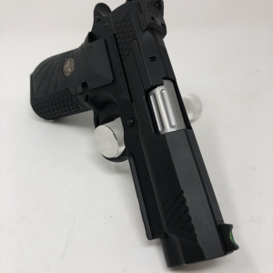 Used Springfield Armory 1911 Operator - 45ACP For those that demand a no-nonsense approach to their defensive grade pistol, the Operator® 1911 stands ready to deliver. Featuring the duty-grade features serious shooters demand, the Operator 1911 builds on the century-plus of service to deliver a cutting-edge, tactical-grade pistol. Tactical Rack rear/tritium front sights, G10 grips, ambi safety, two magazines with bumper pads, forward cocking serrations and more combine to make the Operator 1911 from Springfield Armory a must-have tool for self-defense. ACCESSORY RAIL: With tactical and defensive applications in mind, the rugged and capable Operator® features an integrated Picatinny accessory rail on the dustcover. This ensures that users can equip the pistol with the light, laser or combo unit of their choice. FORGED FRAME & SLIDE: The forged frame and slide, the heart and soul of all Springfield Armory 1911 pistols, sets this gun apart from competitor’s cast models on the market by surpassing them in both strength and durability. AMBI SAFETY: Ensuring the pistol remains operational for the user no matter which hand is available, the Operator® 1911 comes standard with an ambidextrous safety. TRITIUM FRONT SIGHT: Matching up with the Tactical Rack rear sight of the Operator® 1911 pistol is a high-visibility tritium front sight. TWO MAGS W/ BASE PAD: The Operator® 1911 comes with a pair of magazines equipped with bumper pads, ensuring a steady source of reliable firepower. FORWARD SERRATIONS: Forward slide serrations on the Operator® 1911 pistol ensure a solid grip and additional flexibility in operation of the pistol. SKELETONIZED HAMMER: The skeletonized hammer of the Operator® 1911 pistol mates up with an extended beavertail grip safety, ensuring a pinch-free grip and fast lock times. BLACK CERAKOTE® FINISH: Matching up with the rugged durability of the forged steel parts of the Operator® 1911 is a low-key black Cerakote finish that ensures long life protection from corrosion. FORGED MATCH-GRADE BARREL: The match-grade barrel, made from forged stainless steel for the utmost in durability and ruggedness, is designed to deliver the maximum in both barrel life and downrange performance. Matching up with a simple and reliable barrel bushing system, the Operator’s 5” barrel provides the foundation for the pistol’s performance. Twist 1:16 SIGHTS: Tritium Front, Tactical Rack White Dot Rear G10 GRIPS: Combining attractive looks with a no-slip surface, the G10 grips from respected grip makers VZ Grips® round out the tactical-grade package of the Operator® 1911 pistol. With deep scallops for a rock-solid interface between your hand and the pistol, the G10 grips on the Operator complement the ruggedly durable 1911.$1,184.00Original price was: $1,184.00.$890.00Current price is: $890.00. -