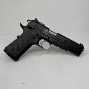 Springfield 1911 TRP Operator (Tactical Response Pistol) chambered in 45 ACP (PC9105L18). Forged National Match carbon steel slide and frame finished in black Armory Kote with a half accessory rail. These are precision fit and then mated with a 5" stainless steel Match grade bull barrel with 20 LPI checkering on the front strap and mainspring housing. It features a crisp 4.5 pound Match grade aluminum lightweight speed trigger, a titanium firing pin and a 1-piece National Match full length guide rod. Fully adjustable 3-dot Tritium night sights. Extended beveled magazine well. Extended bilateral thumb safety. Lightweight Delta hammer. Black/gray G10 grips.$1,595.00