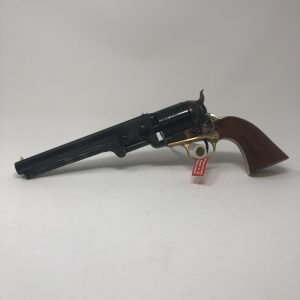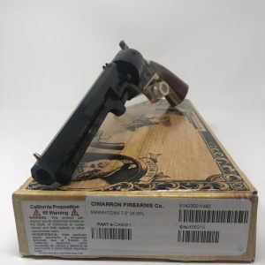 You can hang 'em high or paint the town red with this 1851 Navy cartridge conversion revolver. Either way, this spitting image replica of the 1851 Navy model used by Clint Eastwood in the 1960s spaghetti westerns will surely set you apart from other sixgunners! Retaining a Civil War-era, black powder style loading lever, yet converted to handle modern factory smokeless cartridges in .38 Colt or .38 S&W Special, this 7 1/2-inch, octagonal barreled smokewagon is finished in blue and color casehardening, with a brass back strap and trigger guard. Here's a cartridge conversion sixgun, introduced by Cimarron that definitely stands out from the crowd! -