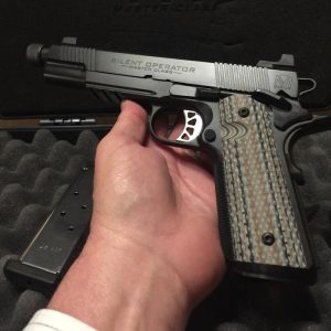 Springfield Silent Operator. 45ACP. Tool steel internals. Assembled in the Custom shop as part of the Master Series. Available in Black or Flat Dark Earth ArmorKote.$1,895.00 -