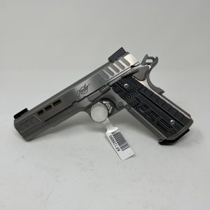 Kimber 1911 Rapide DAWN - Full-Size 9MM - Stainless Steel Match Grade Barrel and Barrel Bushing A truly unique 1911 with stepped cocking serrations, slide lightening cuts for faster lock time and TiN coated barrel for extreme durability. Equipped with Kimber Stiplex TM front strap stippling and the new Gray/ Black G10 WavZ TM grips for extra gripping confidence. Kimpro Silver finish with brush polished flats complete the stunning looks. 9-round SST magazine. Tru-Glo Pro Day Night w/Orange ring front. Stainless steel frame and slide. V-cut aluminum trigger set at 4-5 lbs at the factory.$1,733.00Original price was: $1,733.00.$1,499.00Current price is: $1,499.00. -