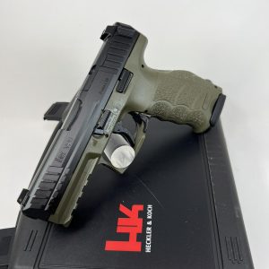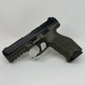 HECKLER AND KOCH (HK USA) VP9 9MM - 17+1 - OPTICS READY - BLACK OVER OLIVE DRAB GREEN The VP9 is Heckler & Koch’s latest, and most successful pistol design. We are pleased to announce that H&K VP 9 pistols will be shipped with the following upgrades: 17-round magazines will replace previous 15-round versions. New sight configuration, which includes a high-visibility front sight and a “clean” black serrated rear. Optional optics-ready cut with cap. Adapter plates are sold separately and are available from the HK web store. Of course, the updated models retain all the existing features of the VP that have quickly made the VP series a class leader in ergonomics and trigger performance. It doesn’t just feel great. It shoots great. In any firearm, especially a handgun, the many “touchpoints” between the shooter and the firearm are critical to consistent, repeatable, performance. The touchpoints we’ve emphasized on the VP that may actually help you improve on the range as well. Experience gained by HK engineers with the P30 hammer-fired pistol had a direct influence on the design of the VP9, but the VP9 breaks new ground with its integration of a unique striker firing system with an enhanced HK “light pull” trigger. The net result is a pistol with custom-fit ergonomics with trigger quality unequaled in any production striker fired handgun. Ergonomic, adjustable grip– Every detail, including the grip angle, the contour of the front strap and the high rear saddle were chosen to fit the human hand. And the adaptable grip frame allows you to interchange both backstraps and grip panels in 27 unique configurations to fit your hand. All of these features help you get the same consistent grip, every time you pick up your VP. Best-in-class trigger– The VP trigger surpasses those found on competitors. It has a short, light take-up with a solid, single action type break followed by a short positive reset. Striker Fired– The VP Series pistols use a striker fired ignition and a modified Browning operating system combined with an optimal precision strike trigger control system — it is in essence a premium HK P30 frame mated to an advanced striker fired slide design. Materials include proprietary HK steel for barrel, slide, springs, pins and internal components. In addition to these features, all controls are completely ambidextrous including HK’s patented charging supports — simple components that are mounted on each side of the rear of the slide and provide better gripping leverage for racking the slide rearward. The charging supports speed reloading and make operating the VP9 easier for shooters with reduced hand strength. The VP pistols uses the proven P30 steel magazine; 17, 15 and 10-round capacity available. The VP9 has an extended Picatinny MIL-STD-1913 rail molded into its polymer frame for mounting lights and accessories. The rail has been tested and certified to handle mounted accessories up to 5.6 ounces. The VP9’s proprietary captive flat recoil spring helps reduce the recoil forces effecting the operator and the handgun, improving shooter control during rapid firing and prolonging component service life. HK’s famous cold hammer forged barrel — made from cannon grade steel — ensures long service life. Similar HK barrels on 9 mm P30 models fired more than 90,000 rounds in endurance tests in 2010. The polygonal bore profile, with no traditional lands-and-grooves rifling, contributes to longer service life as well as a slight increase in muzzle velocity. The VP9’s machined steel slide is protected from corrosion and wear by HK’s hostile environment finish. VP pistols are made in Heckler & Koch’s Oberndorf factory in southwest Germany and are covered by Heckler & Koch’s limited lifetime warranty.$919.00Original price was: $919.00.$729.00Current price is: $729.00. -