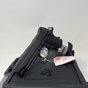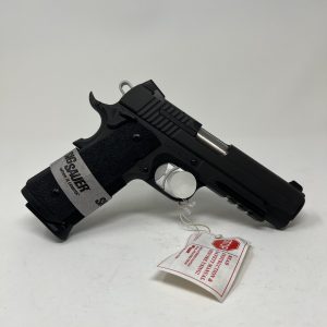 SIG SAUER 1911 CARRY TACOPS with ACCESSORY RAIL - 4.2" FLUSH CUT & REVERSE CROWNED BARREL - 45ACP NO LONGER IN PRODUCTION - THIS ITEM IS NOS (NEW OLD STOCK). The legendary 1911 design has been brought into the 21st century with the refinement today’s shooters demand. The SIG SAUER 1911 proves that close tolerances equal complete reliability and need not be incompatible in an off-the-shelf pistol. The pistol features clean, distinct lines that American shooters have embraced while retaining the crisp trigger pull, classic ergonomics and exceptional accuracy they expect. It features a stainless steel slide and frame which are both finished in Nitron which is Sig Sauer's registered name for a PVD (Physical Vapor Deposition) coating applied by IonBond. The 4.2" flush cut and reverse crowned barrel is made from carbon steel and is exceptionally accurate. The black Ergo XT grips plus checkering on the frontstrap and backstrap make this firearm a pleasure to grip and combined with the rear SIGLITE Tritium 2-Dot and front SIGLITE 1-Dot sights assure you can acquire and hold onto your target regardless of light conditions.$1,492.00 -