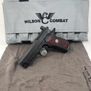 Used WILSON COMBAT PROFESSIONAL 9MM - 4" FLUSH-CUT REVERSE CROWNED MATCH GRADE CONE BARREL - SPECIAL ORDER The Wilson Combat® Professional model pistol is a direct result of consumer requests and has been a customer favorite since its introduction. The Professional® is a custom handgun with a full-size frame mated to a compact barrel/slide assembly. We take pride in innovation at Wilson Combat®, which often includes listening to our customers and building to their needs. The Wilson Combat® Professional model pistol is a direct result of consumer requests, and has been a customer favorite since its introduction –- a custom handgun with a full-size frame mated to a compact barrel/slide assembly. If you shoot a full-size 1911 pistol, this built-for-carry gun is going to feel great in your hands; the frame is the size you have become accustomed to holding. And after experiencing the ease and speed of getting on target with the compact slide and shorter sight radius, you will agree –- this is a fine firearm to have On Your Side®. SPECIFICATIONS Professional-Size Carbon Steel Frame High-Cut Checkered Frontstrap High-Ride Bullet Proof® Beavertail Grip Safety Bullet Proof® Thumb Safety Ambidextrous Bullet Proof® Thumb Safety 3 ½# Crisp Trigger Pull Bullet Proof® Magazine Well G10 Starburst Grips with Pewter Medallions 4″ Carbon Steel Slide Heavy Machine Chamfer on Bottom of Slide Battlesight with Fiber Optic Front Sight 4″ Stainless Match-Grade Cone Barrel with Fluted Chamber and Flush Cut Reverse Crown; Hand Fit Accuracy Guarantee: 1.5" at 25 yards$4,280.00Original price was: $4,280.00.$2,942.00Current price is: $2,942.00. -
