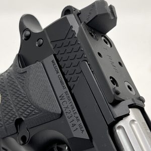 New Wilson Combat EDC-X9 Optic Ready Subcompact 3.25" - 9mm - Black Slide over Black Frame w/Light Rail - Dark Cherry Grips The Wilson Combat EDC-X9 9mm defensive handgun is now available with a 3.25" subcompact barrel and slide assembly. This rendition of the EDC X9 is a very fast-handling defensive carry gun, a pleasure to shoot and extremely accurate and comes with Wilson Combat's accuracy guarantee of 1.5" at 25 yards. The hand-fitted 3.25" stainless-steel barrel design has the same match-grade accuracy potential as the larger EDC X9 handguns and is painstakingly tuned by our gunsmiths for flawless reliability with a wide variety of target and defensive ammunition. The 3.25" subcompact slide assembly is tailored to the varying power level of 9mm ammunition and maintains impressive reliability in all conditions, even when heavily fouled and low on lubrication. Other features include a Tri-Top slide profile with user-replaceable front sight, single lug tapered cone match-grade 1911 barrel, rear Tactical Concealment Battlesight and a rugged, user-replaceable extractor. The X-frame is a 15-round, high capacity 9mm 1911 frame that is similar in size to a traditional compact, single stack 1911. The X-frame is machined at Wilson Combat from T6-7075 aluminum and accepts a high-capacity magazine with a grip that is smaller in circumference than a standard 1911 while retaining traditional 1911 controls. The EDC X9 15 and 18-round, double-column magazines were developed jointly with Mec-Gar, industry leaders in double column magazine design. The screwless X-frame design uses hammer spring tension to keep the aggressive traction Wilson/VZ G-10 starburst pattern grips securely in place. The result is a highly concealable, high-capacity pistol frame that completely disassembles for cleaning with only a single punch without screws or frame bushings and a more natural, oval grip shape. The ergonomic design of the X-frame grip in conjunction with an enlarged trigger guard window and your choice of radiused trigger pad length fits all hand sizes comfortably and improves recoil control. The EDC-X9 front and back strap are machined with the Wilson Combat X-Tac tread pattern that provides a comfortable but tactile grip in all shooting conditions. The EDC-X9 3.25" will fit the majority of holsters on the market designed for subcompact 1911 pistols and is offered with or without an accessory rail. Thoroughly tested by our team of designers, champion shooters, and external industry experts, the Wilson Combat EDC X9 offers discriminating shooters 1911 match-grade accuracy, superior ergonomics, and concealability combined with modern service pistol capacity and reliability. Key Details: *Available calibers: 9mm *Base price: $3,210 (9mm) plus Optics Ready Slide Cut $375 *Magazine capacity: 15 rounds *Barrel length: 3.25" *Overall length: 6.75" *Sight radius: 5" *Height: 5.25" *Width: 1.4" *Weight empty: 27.6 oz *Weight loaded: 34.3 oz *Accuracy guarantee: 1.5" at 25 yds Specifications: *High-Capacity Compact size Aluminum X-Frame with Reliability Enhanced Frame Rails *Unique X-TAC frontstrap/backstrap treatment *Concealment Bullet Proof® hammer *Bullet Proof® thumb safety *3 ½# – 4 ½# crisp trigger pull with lightweight medium pad *Bullet Proof® magazine release *Black G10 aggressive Starburst grips with Pewter medallions *3.25" Stainless Steel Tri-Top slide with external extractor *Black Armor-Tuff finish on slide *Unique X-TAC Rear cocking serration treatment on slide *Heavy machine chamfer on bottom of slide *Elevation Adjustable Tactical Battlesight with Fiber Optic Front Sight with 4-40 Hex Head Cap Screw *3.25" Stainless Cone barrel with Reliability Enhancing Lock-up; flush cut reverse crown *Fluted chamber *Fluted barrel *30 LPI slide top serrations *Carry cuts *Two 15-round capacity flush-fit magazines$3,585.00Original price was: $3,585.00.$3,050.00Current price is: $3,050.00. -