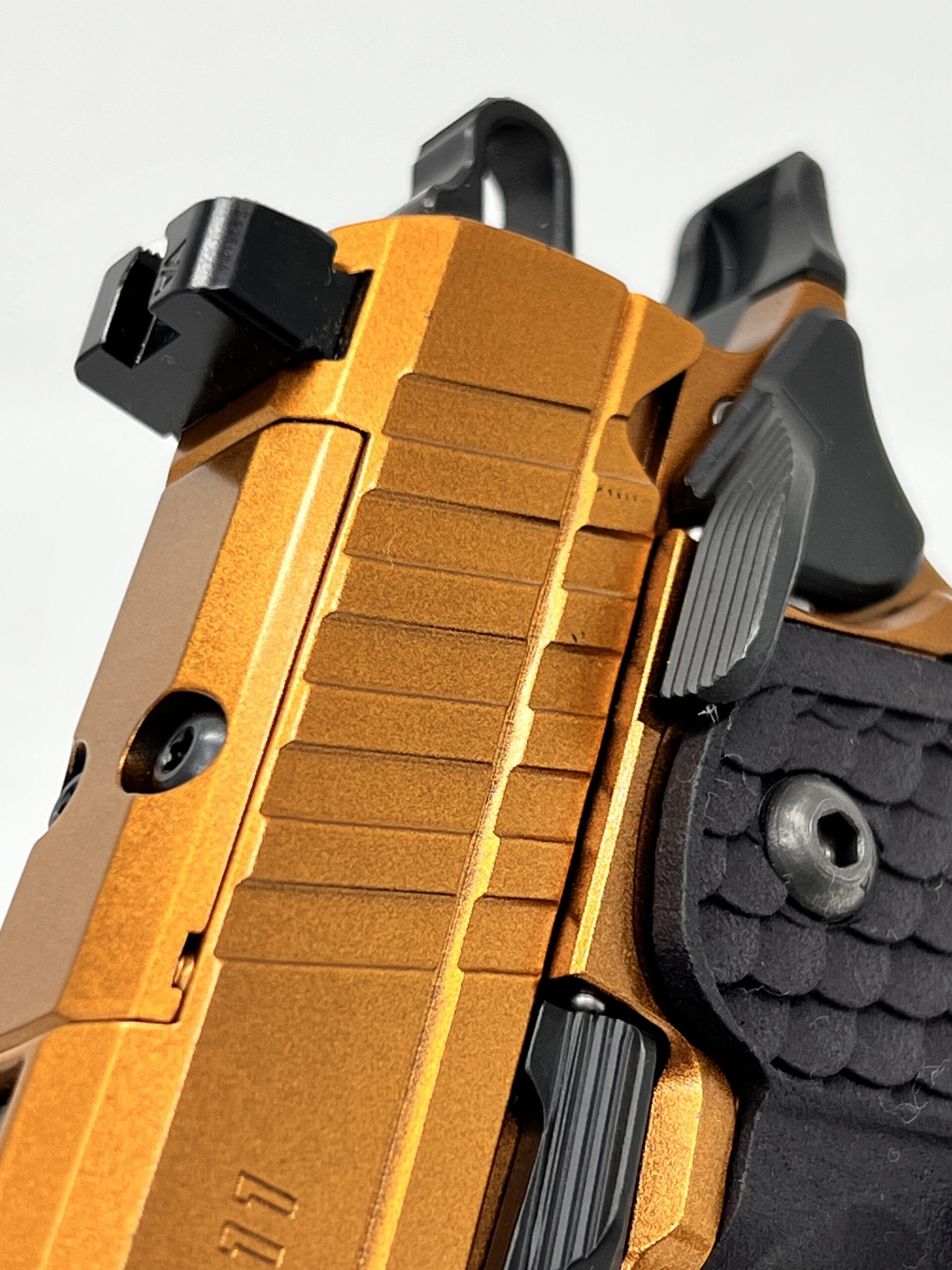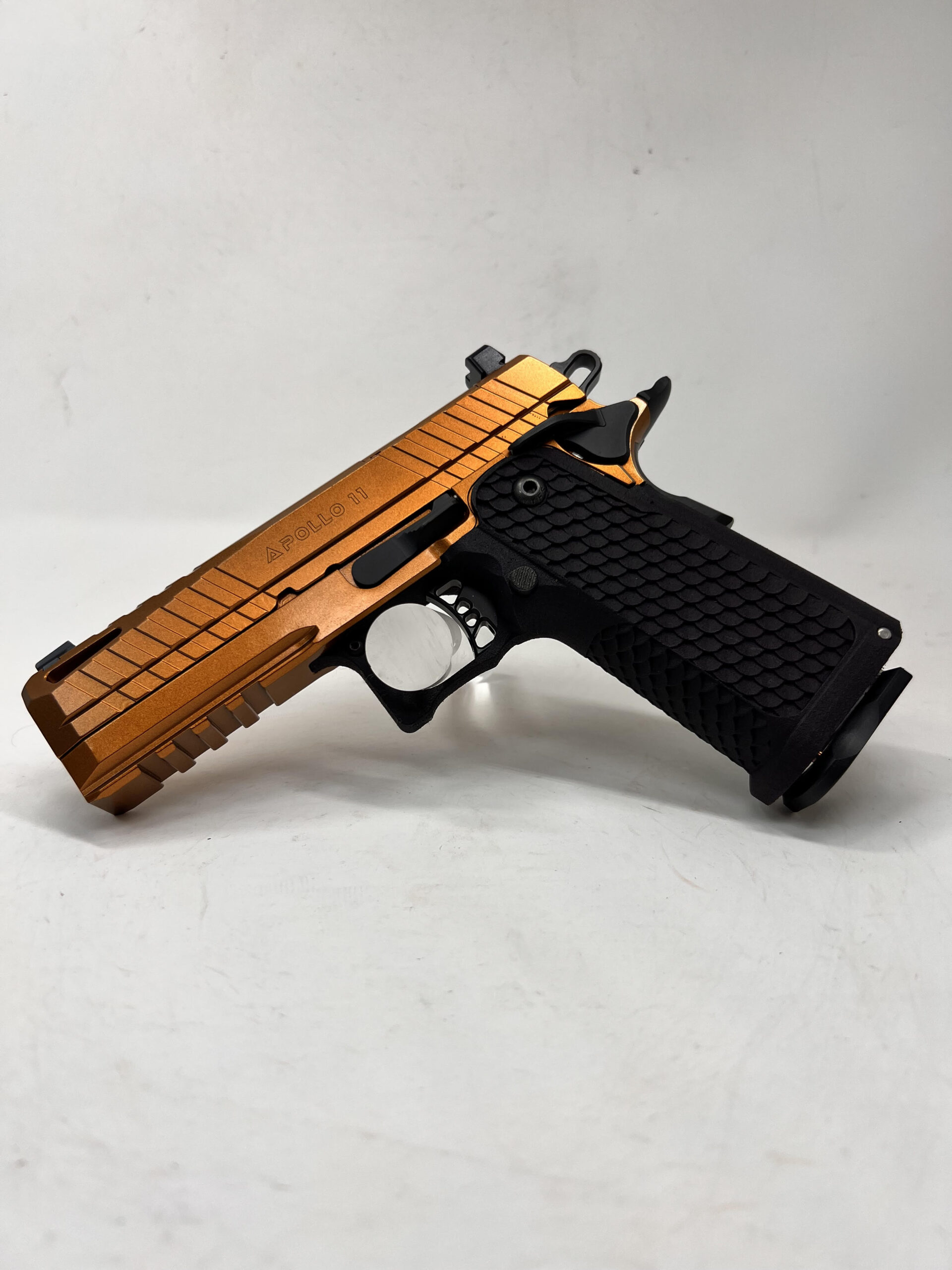 The Apollo 11 Compact 9mm Pistol offers the same exceptional blend of style and performance as its full-size counterpart, tailored for those seeking a more compact and maneuverable firearm. This version features a 4.15-inch barrel, making it an ideal choice for concealed carry or for users who prefer a more compact profile without sacrificing the superior functionality of the Apollo series. Despite its reduced size, the compact model maintains a robust double-stack magazine capacity of 17+1 rounds of 9mm, ensuring that firepower is not compromised.