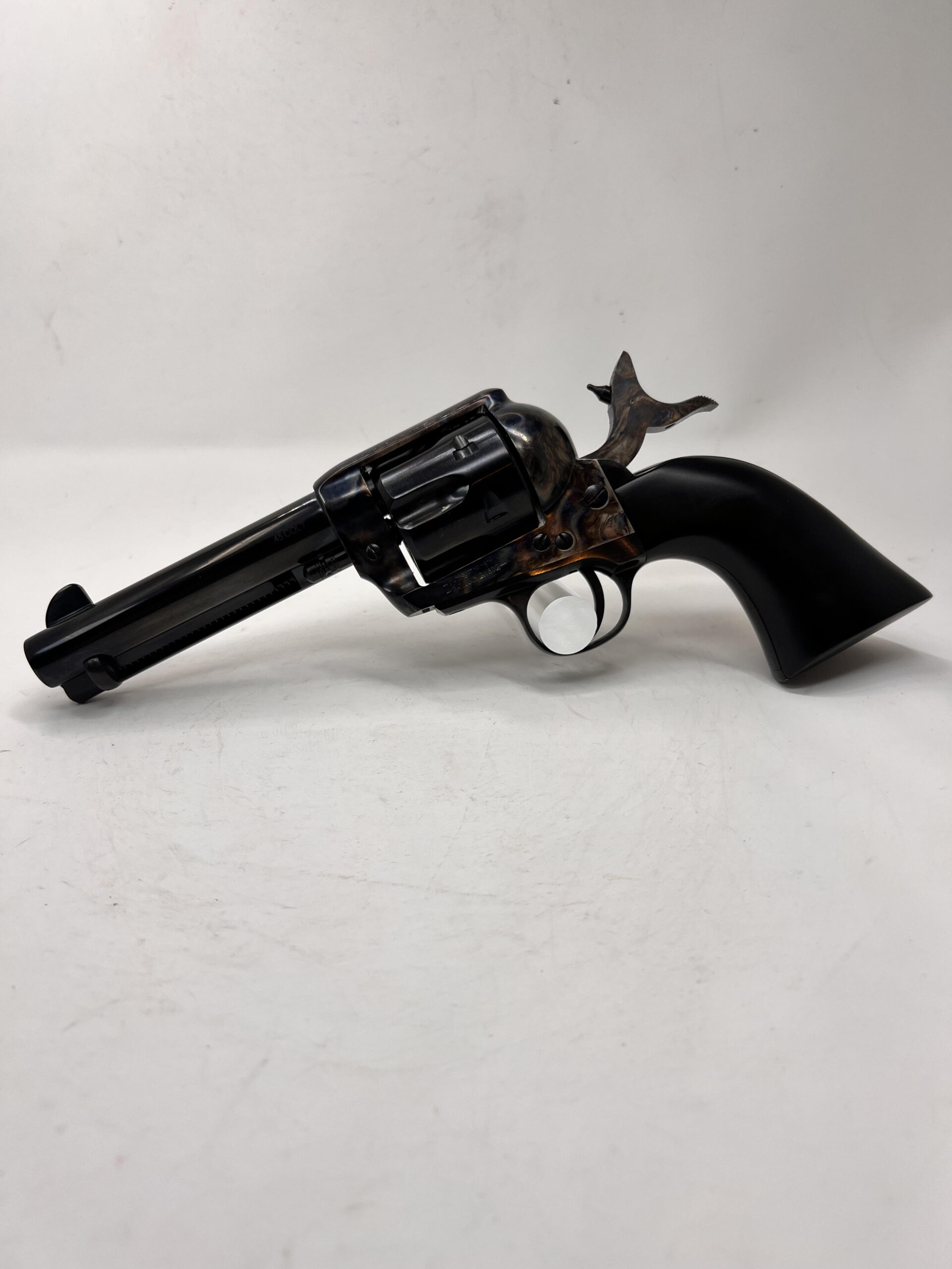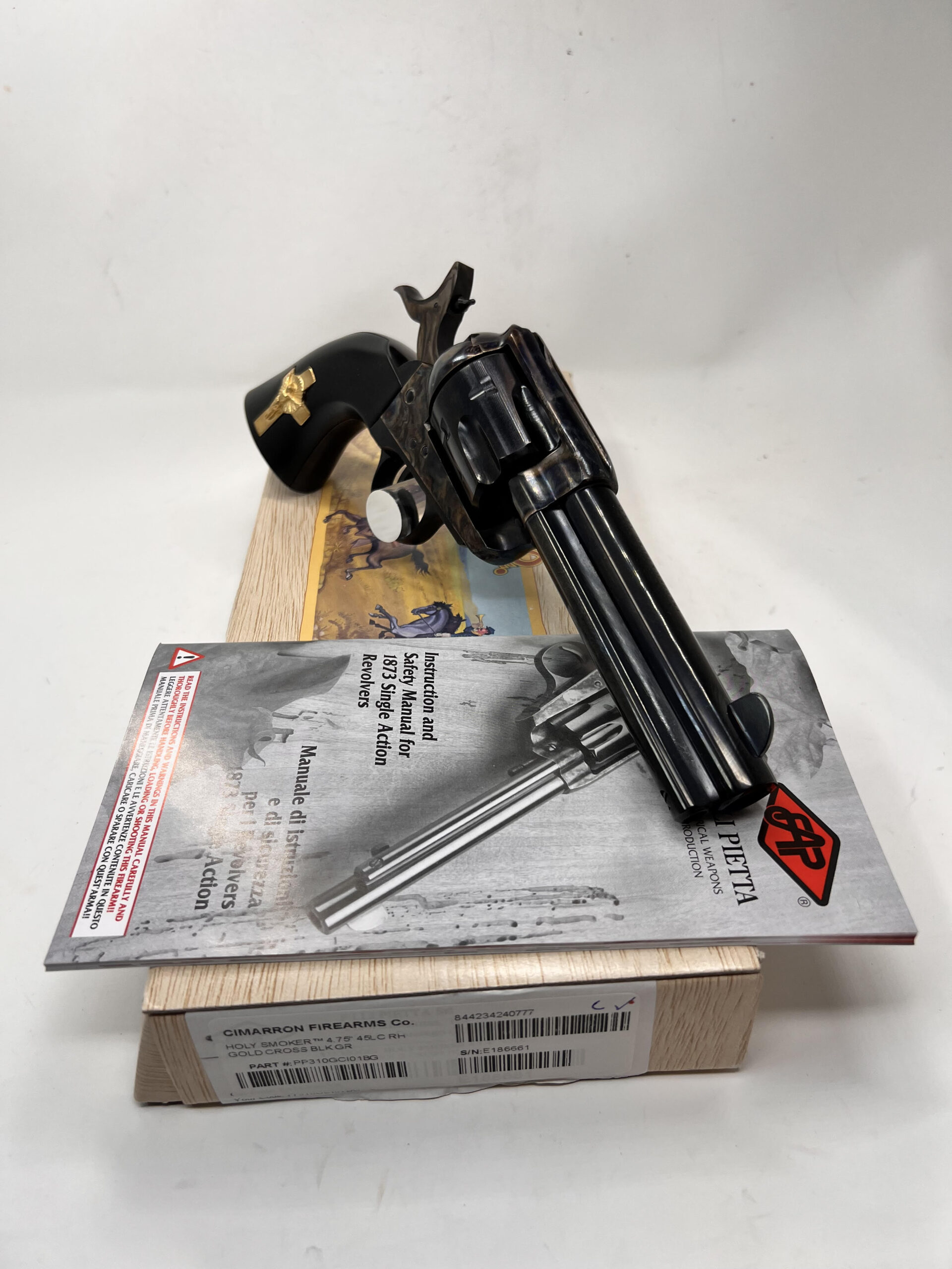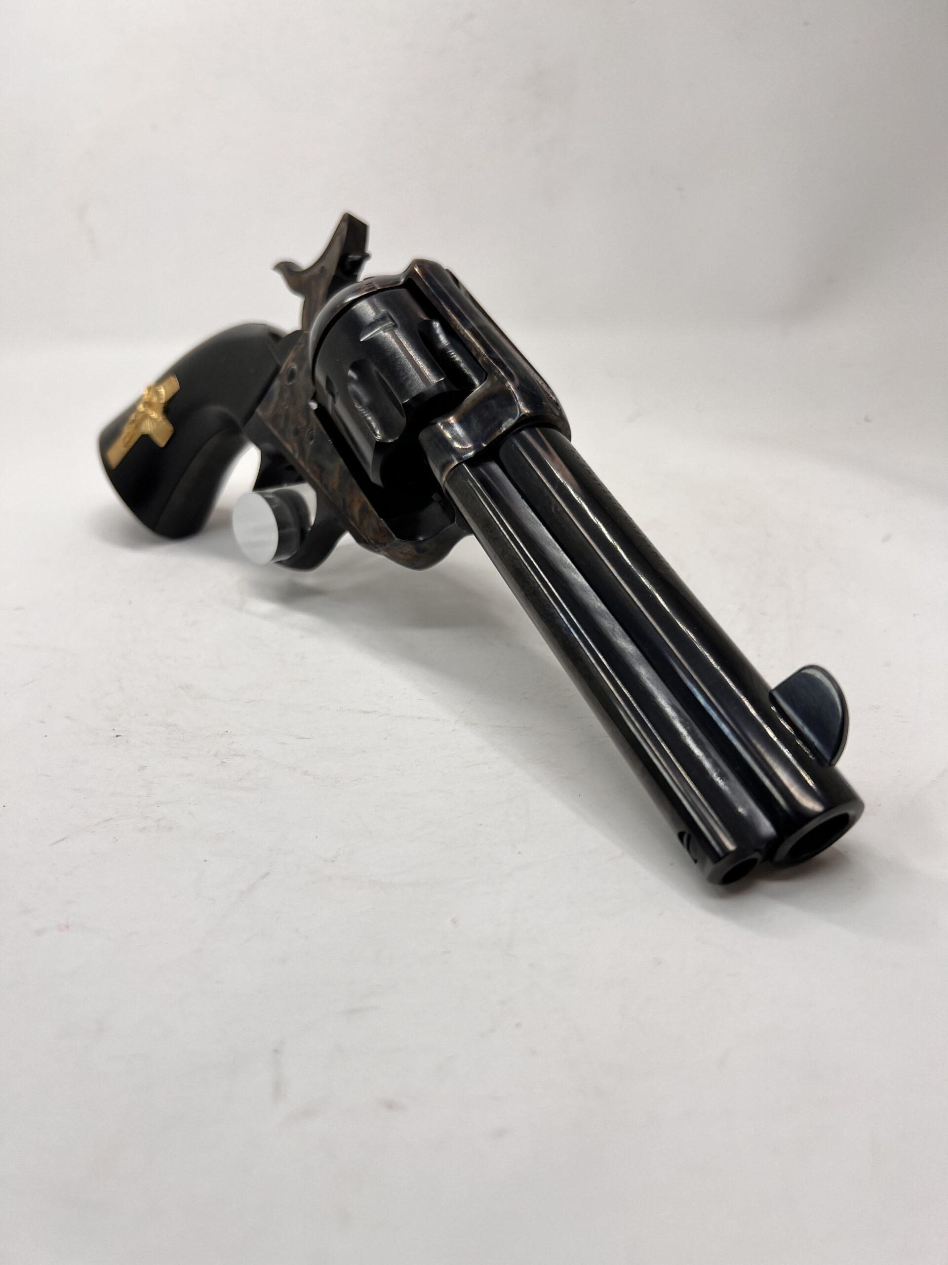 New PIETTA FRONTIER “HANDS of GOD” 45LC 4.75” HOLY SMOKER® – “3:10 to YUMA” – BLUED & COLOR CASE HARDENED w/INLAID GOLD PLATED STERLING SILVER CRUCIFIX – 4-CLICKER