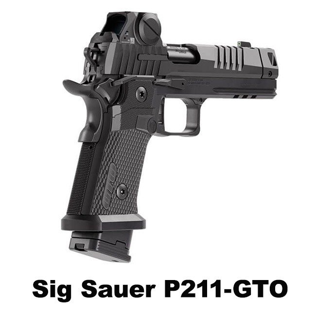 All new Sig Sauer P211-GTO, hailed as the next generation in Double Stack 1911 – 2011 pistol design and performance. This Sig P211-GTO is the future in precision shooting, engineered for speed, reliability and uncompromising performance. Perfect for the competitive shooter or range enthusiasts demanding the best in performance and reliability. The P211-GTO is equipped with a cutting-edge Mach3D Compensator that utilizes a specialized gas flow design to reduce muzzle rise and felt recoil up to thirty percent. Creating a faster cycling, smoother shooting pistol with more accurate follow-up shots, delivering amazing results every time! Every SIG P211 sports a 4.4 inch precision Bull Barrel that adds to the accuracy and durability, along with an optic cut slide and full length dust cover for easy addition of any rail mounted accessory. Furthermore, the P211 comes with one 23 round and two 21 round magazines, and sig offers a three 10 round magazines or three 17 round option as well for compliant states. Also, the P211 comes with a enhanced X-Series Slide with a optional Sig ROMEO PRO SIG-LOC Optic already installed or an optics ready version with removable iron sights. Its high capacity 23 round magazine makes the GTO perfect for high-round count drills or competition. SIG’s P211 features modern ergonomics, easy to manipulate controls, ambidextrous thumb – grip safeties, crisp trigger pull of 3.5-4 pounds and a flared magazine well for trouble free reloads.
