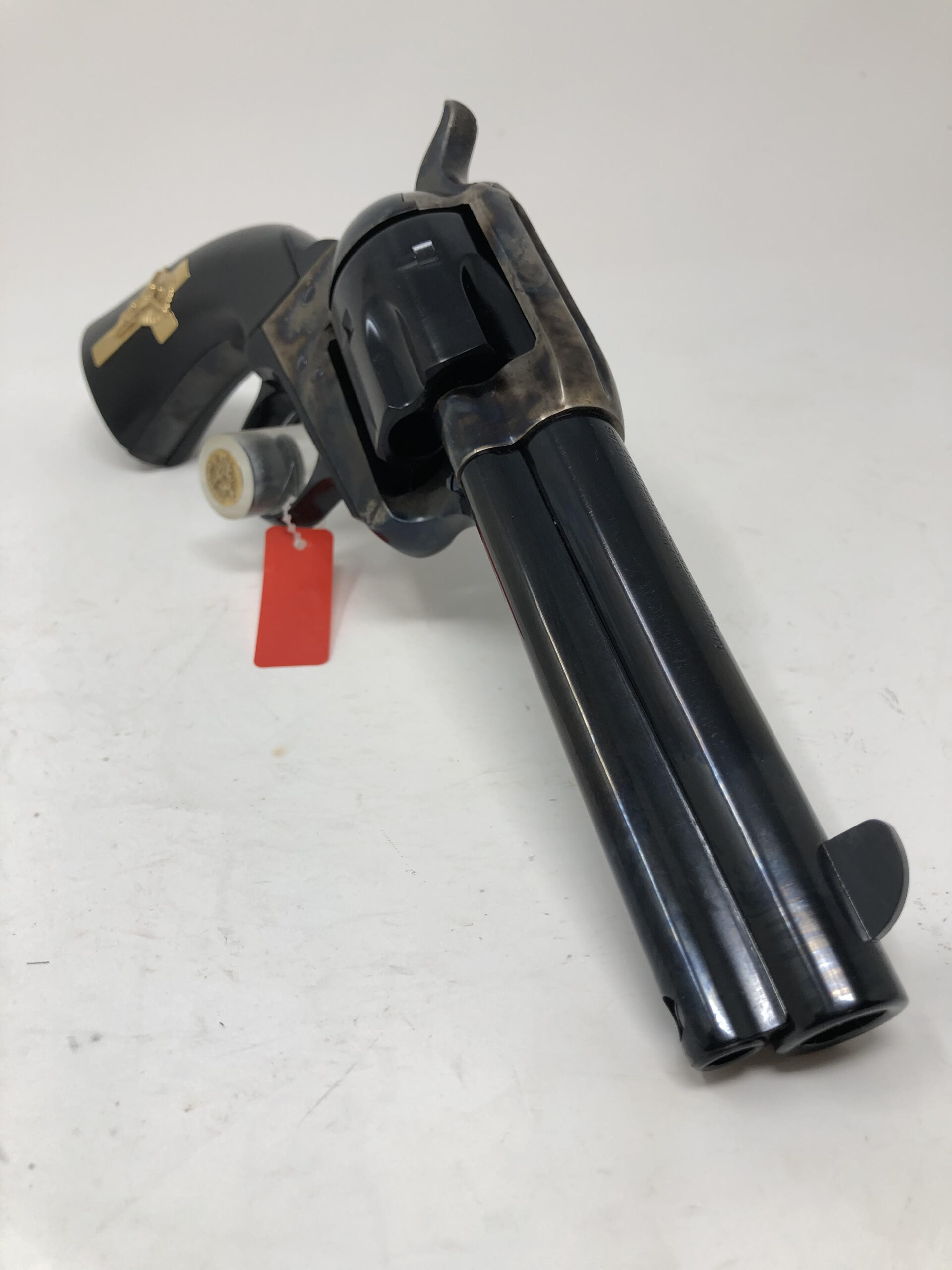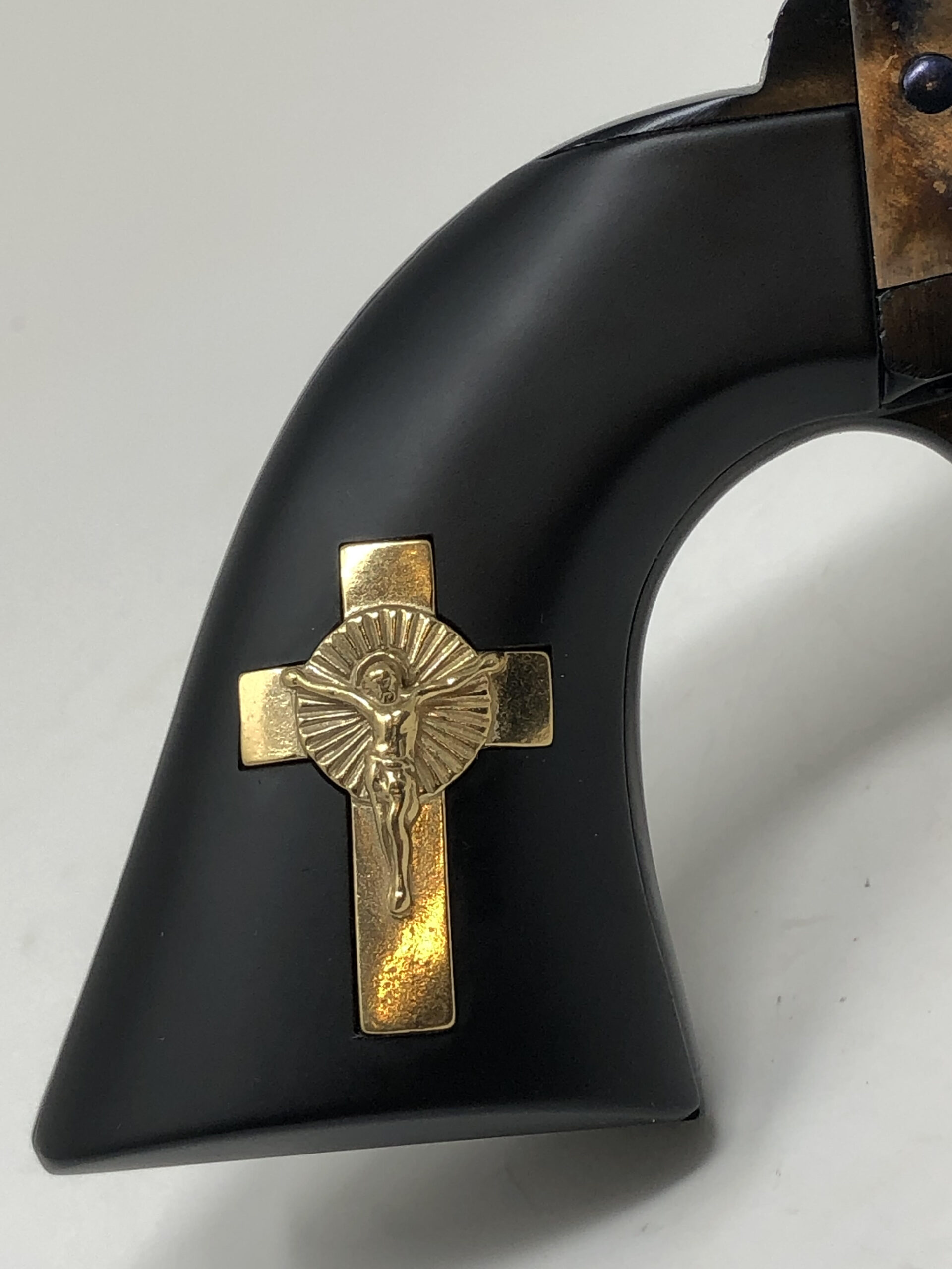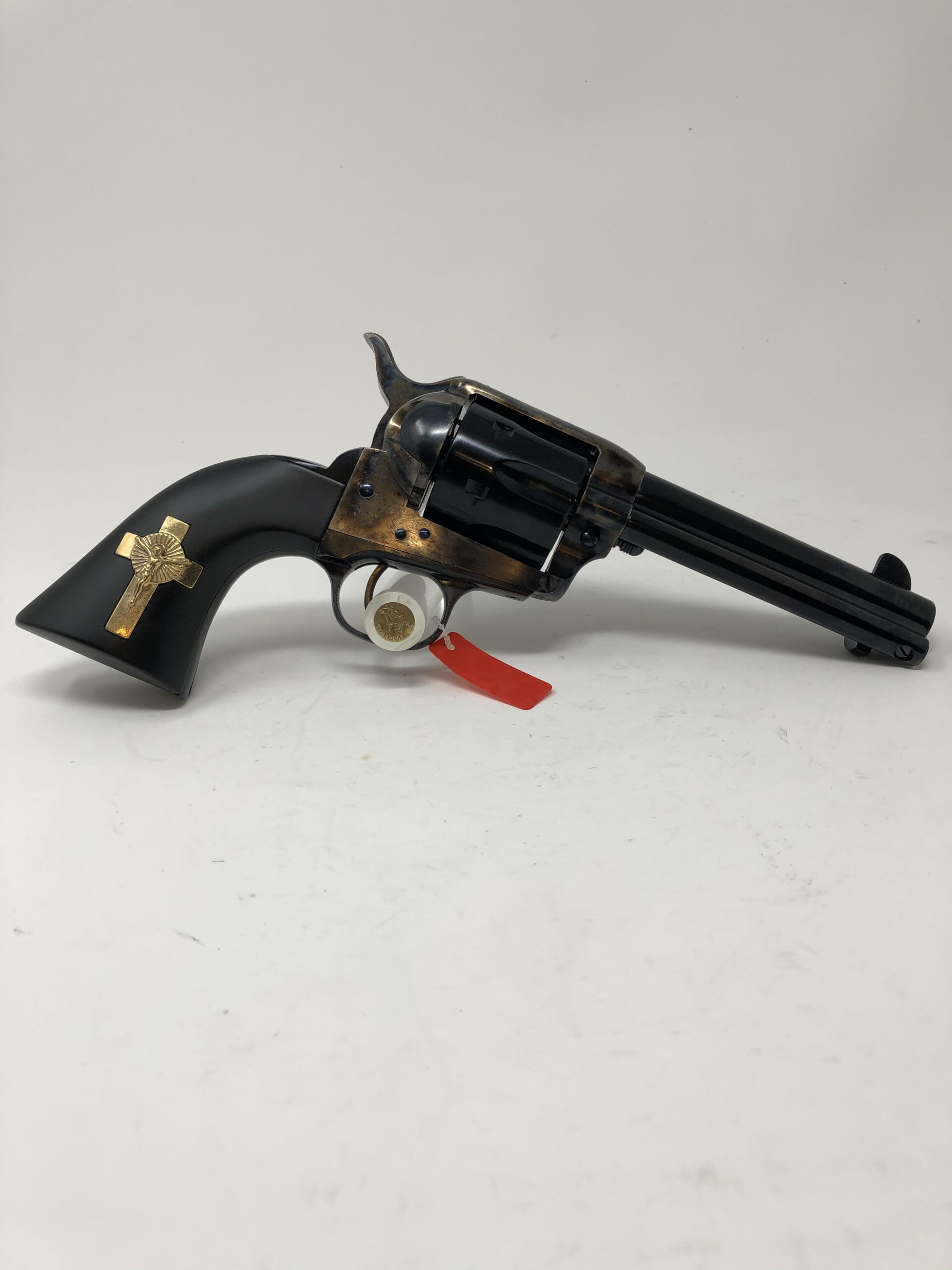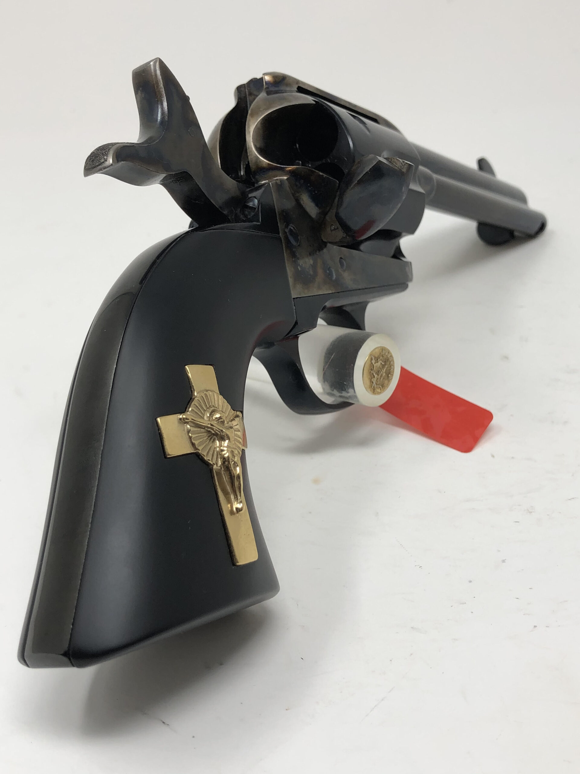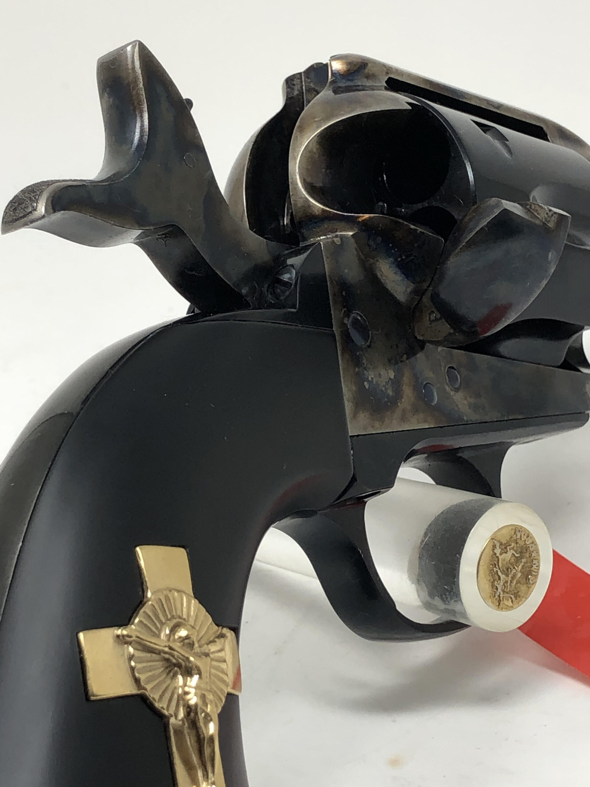 New UBERTI MODEL P “HANDS of GOD” 45LC 4.75” HOLY SMOKER™ – “3:10 to YUMA” – BLUED & COLOR CASE HARDENED w/INLAID GOLD PLATED STERLING SILVER CRUCIFIX