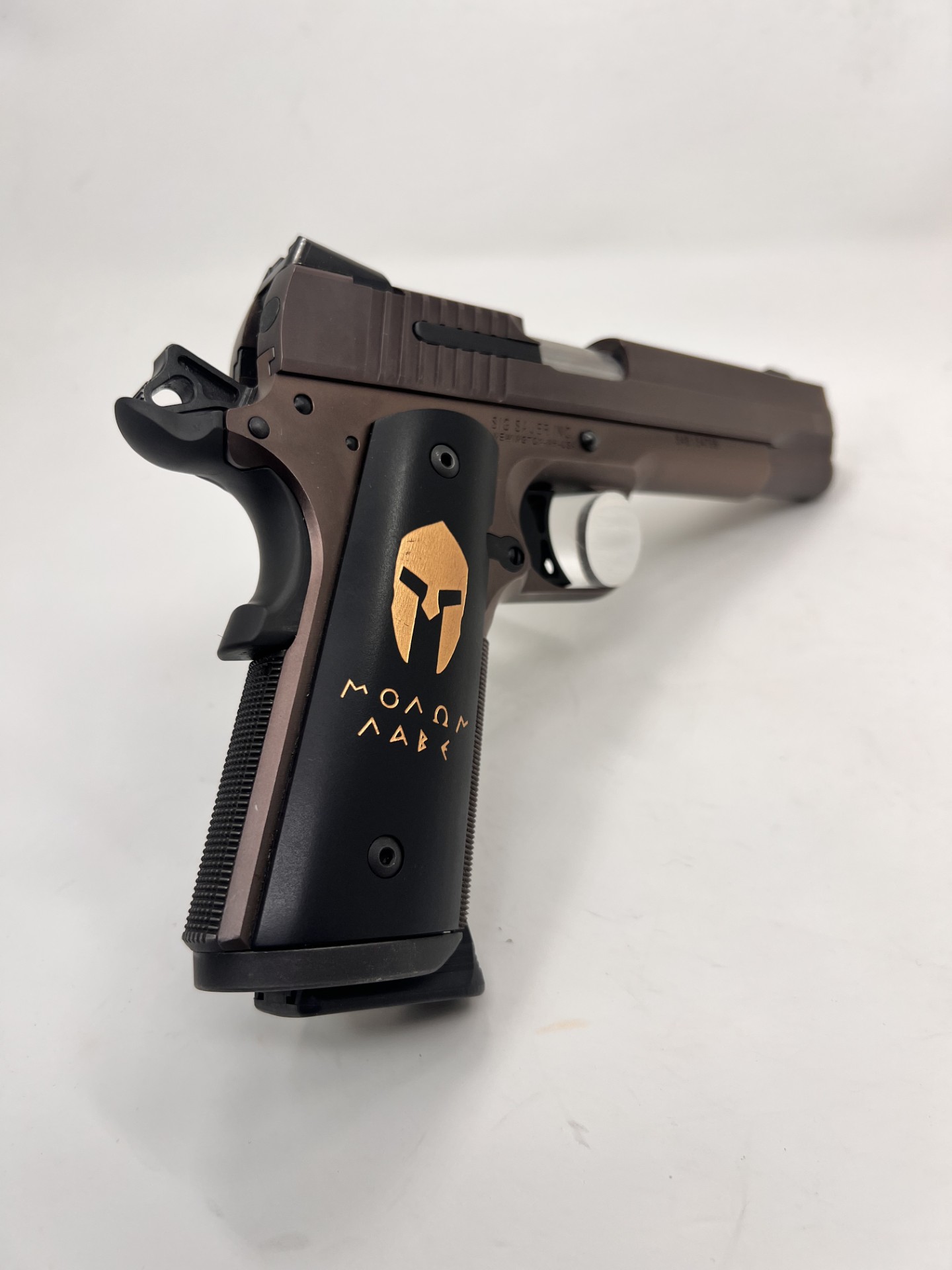 Used SIG SAUER 1911 SPARTAN I – 5″ BARREL – 45ACP – STAINLESS STEEL w/OIL RUBBED BRONZE NITRON FINISH